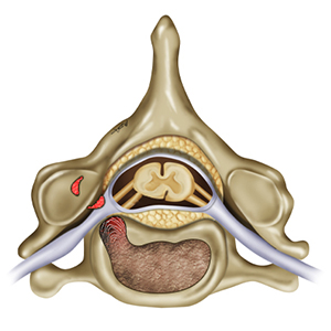 쿠션 같은 연골 조직인 추간판(디스크)이 밀려 나오게 되어 경추 신경을 압박하여